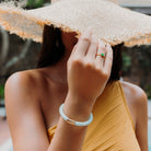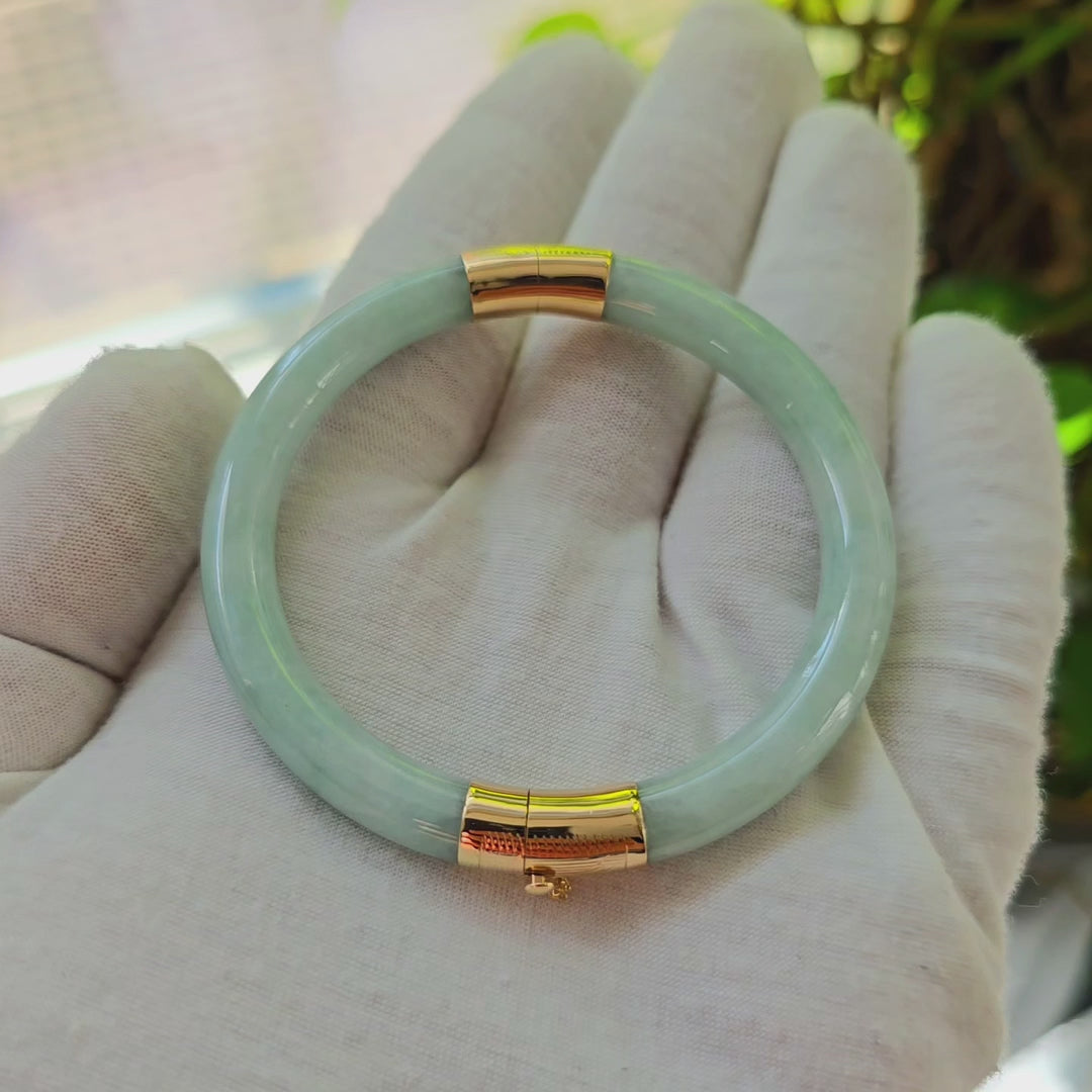 A commanding homage to imperial legacy, the Regent Bangle flows with rich green marbling and the vivid inner fire of natural jadeite—formed over centuries, and forever rare. Secured with a gold clasp and sculpted to an elegant ergonomic curve, it is not merely worn—it reigns.